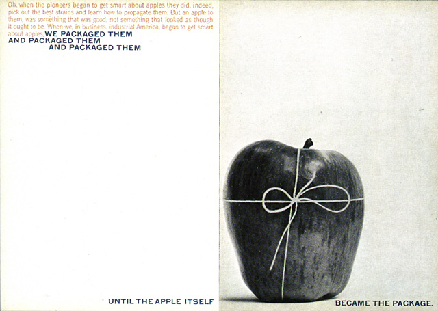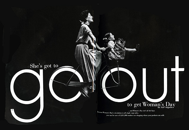 "جنه فدریکو" حروف و عکس را به گونه ای مطایبه آمیز با یکدیگر تلفیق کرد تا پیام را در این آگهی روز زن متعلق به سال 1951 میلادی، که در مجله نیویورکر چاپ شد، پررنگ نماید.