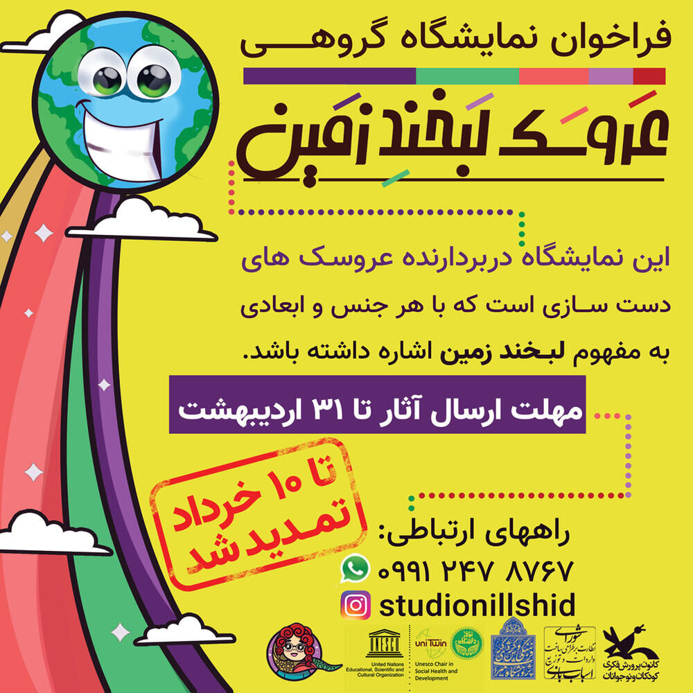 به گزارش روابط عمومی مرکز هنرهای تجسمی به نقل از کانون پرورش فکری کودکان و نوجوانان، فراخوان ارسال آثار نمایشگاه عروسک «لبخند زمین» که با حمایت شورای نظارت بر اسباببازی و مشارکت مرکز سرگرمیهای سازنده و بازیهای رایانهای کانون پرورش فکری کودکان و نوجوانان و استودیو عروسک نیلشید برگزار خواهد شد، تمدید گردید.