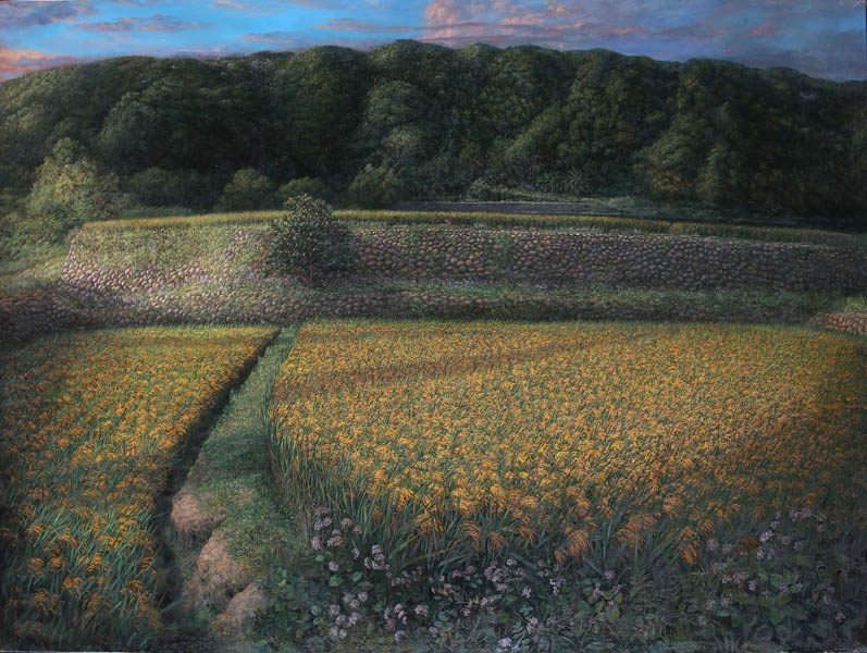تابلوی برگزیده سال 2020/ غروب آفتاب بر روی دیوار سنگی/رنگ و روغن روی بوم/ اثرِ هنرمند تایوانی "تین هونگ"