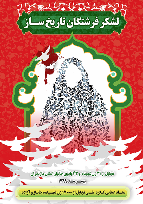 پوستر « لشکر فرشتگان تاریخ ساز» اثر « ملیحه مقصودی شهمیرزادی» کارشناس گرافیک حوزه هنری مازندران در بین چند طرح ارائه شده به عنوان طرح برگزیده این رویداد ملی منتشر شد.