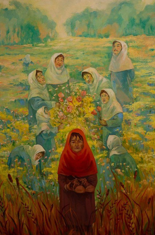 در واقع اثر محصول ادراکات سیاسی و اخلاقی است و در پوسته زیرین زیبا شناختی خود به بازنمایی ارزشها و باورهایی مذهبی میپردازد؛ به عنوان مثال: فضایی پوشیده از گلها، باغ و یا گلستانی را در تابلو می بینیم و دخترانی که گویی مجذوب زیبایی های آن و برخوردار از آسودگی و انبساط خاطر در اوج لذت خود به سرمی برند. به تعبیری نه تنها در باغ قرار گرفتهاند بلکه به گلهای آن هم تبدیل شدهاند. وسعتی گسترده که میتواند القاگر تصویری از بهشت رضوان، مقصد نهایی انسان و همینطور وعده خداوند برای مقام شهید باشد. حتی « آتش» و دختری در محاصره شعله های آن، تلاشی است از سوی هنرمند در جهت ایجاد عمق و تطبیق معنایی. به این مضمون که شعله های آتش در فرهنگ تشیع یادآور اتفاقات تلخ و گزندهای است. حوادثی مهم و تاثیرگذار مانند شهادت حضرت فاطمه(س) و یا عصر روز عاشورا.
