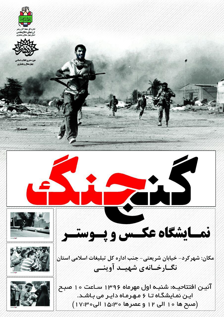 «گنج جنگ » عنوان نمایشگاه پوستر و عکس به مناسبت هفته دفاع مقدس است که حوزه هنری چهارمحال و بختیاری در حال برگزاری آن است.