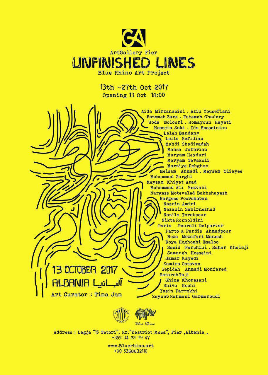 گفتنی است نمایشگاه گروهی «خطوط نا تمام»، از 21 مهر تا 5 آبان ماه 1396 در گالری مرکزی شهر «Fier» آلبانیا، دایر خواهد شد.
