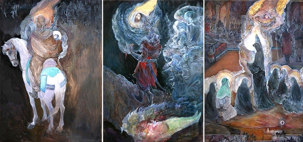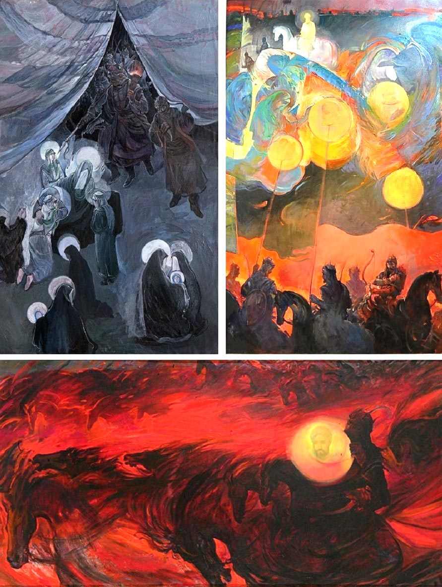 حبیبالله صادقی از جمله نقاشانی است که در آثار عاشوراییِ پرتعداد خود همواره معیارهای مذکور را مدنظر داشته است. این هنرمندِ متعهد فعالیتهای بسیاری در زمینه هنر عاشورایی دارد و حتی نذر کرده تا هر سال در شب شام غریبان یک تابلو برای امام حسین(ع) نقاشی کند. در ادامه تعدادی از نقاشیهای عاشورایی حبیبالله صادقی را تماشا میکنید.