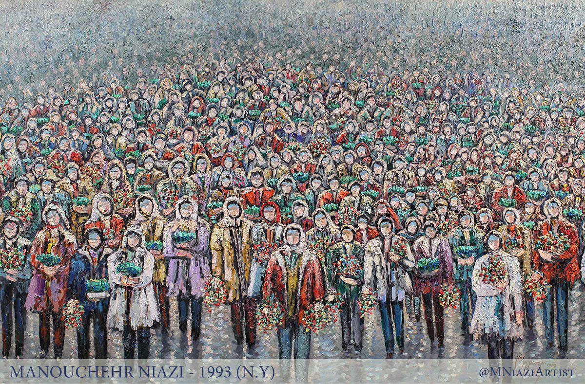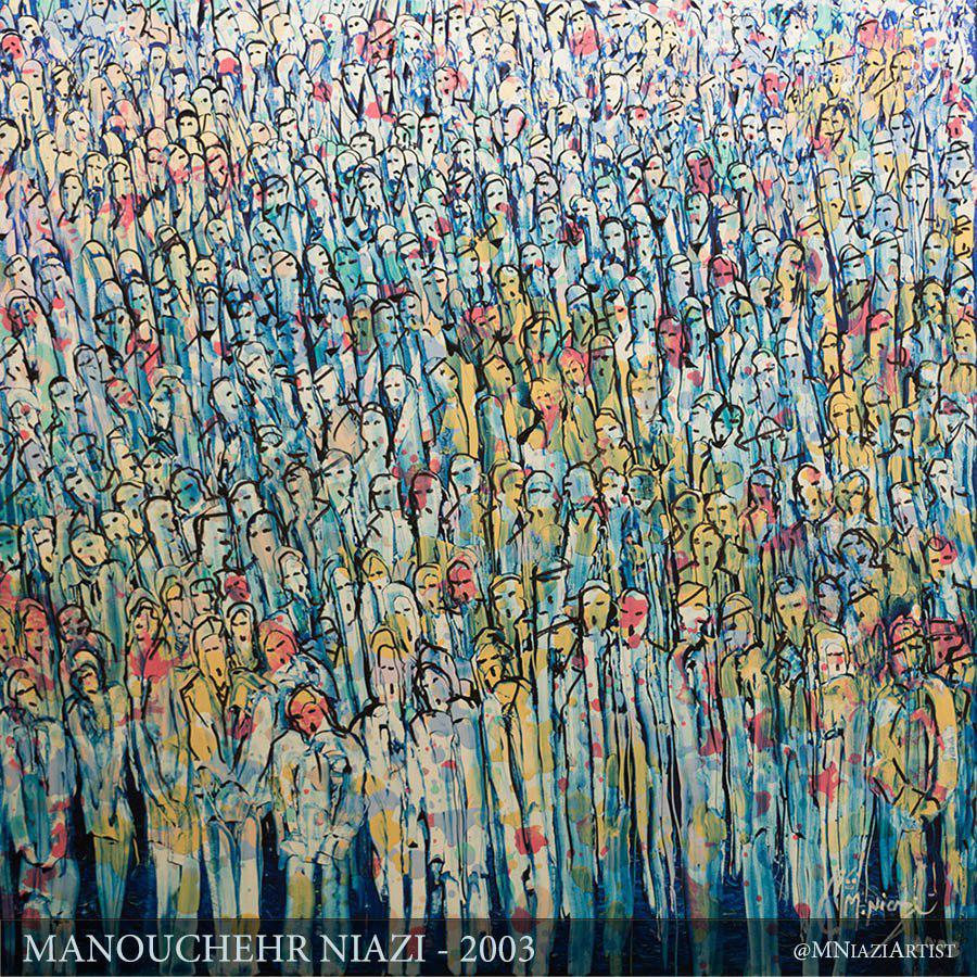 زبان اول منوچهر نیازی نقاشی است. شغلی حرفه ای که بیش از شش دهه گذشته پیش می رود، بیش از 170 نمایشگاه گروهی مهم و 84 نمایشگاه تخصصی حرفه ای را در گالری ها و موزه ها در سراسر جهان پخش می کند. پاریس، لندن، نیویورک، کالیفرنیا، فلوریدا، سیدنی، به نام چند، میزبان برخی از نمایشگاه های موفق خود را. نقاشی های نیازی نیز در مجموعه های خصوصی از شخصیت های عمومی و مشهور، گالری ها و موزه ها در سراسر جهان گنجانده شده است.