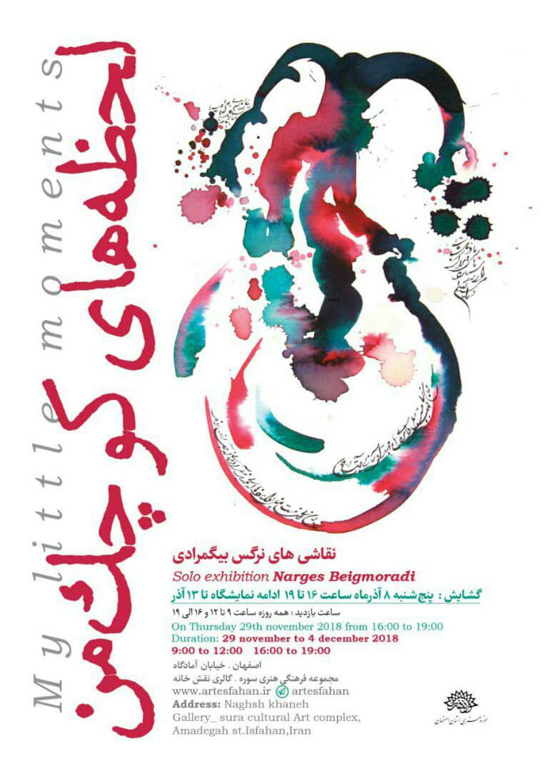 به گزارش روابط عمومی حوزه هنری استان اصفهان، نمایشگاه «لحظه های کوچک من» شامل 29 اثر از این هنرمند است که در ابعاد 30 در 40 و با تکنیک جوهر بر مقوا کارشده اند و به نوعی نشانگر فضای ذهنی نقاش هستند که در لحظه ای شکل گرفته است و به روی کاغذ منتقل شده است.