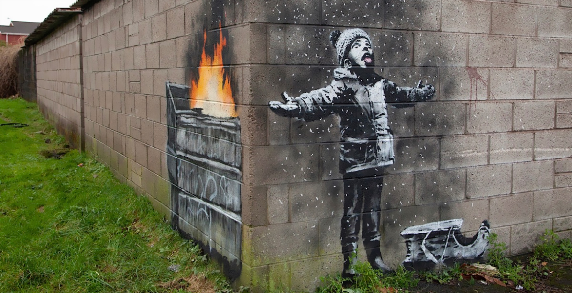 این گرافیتی در ۲ بخش و روی ۲ دیوار متقاطع کار شده است. در یک سمت کودکی مشاهده می شود که با کلاه و لباس زمستانی ایستاده و با دستانی از هم گشوده و دهانی باز از آنچه بارش برف به نظر میرسد شادمان است، اما قسمت متاثر کننده این اثر در سوی دیگر دیوار است که مشخص می شود این دانههای معلق در هوا، نه برف که خاکستر حاصل از سوختن آشغال و یا ضایعات است.