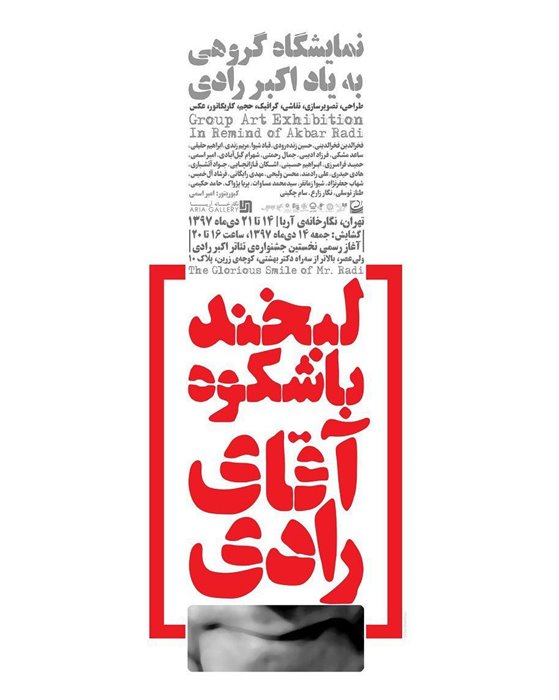 نمایشگاهی گروهی به یاد اکبر رادی با عنوان «لبخند با شکوه اقای رادی» در تهران برگزار می شود.