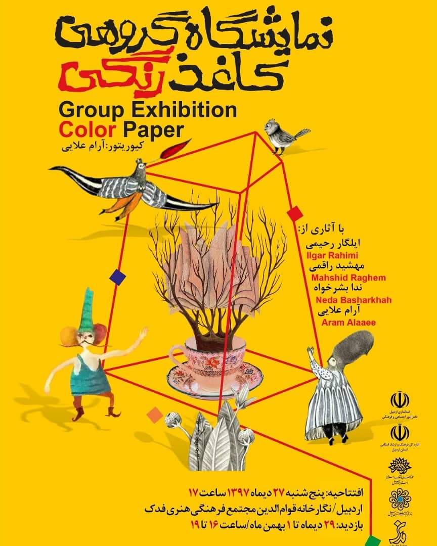 به گزارش روابط عمومی مرکز تجسمی حوزه هنری، نمایشکاه گروهی تصویرسازی، با عنوان: «کاغذ رنگی» روز پنج شنبه 27 دی ماه 1397 ساعت 17 در نگارخانه قوام الدین مجتمع فرهنگی هنری فدک اردبیل افتتاح و تا 1 بهمن ماه ادامه خواهد داشت.