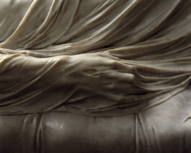 حالت خفته پیکر مسیح و آرامشِ خاصِ نهفته در اثر، چین و شکن های ظریف پارچه، حالت دست ها و فرم سر و ظرافتی که پارچه ای همچون حریر، روی پیکر را پوشانده بسیار قابل توجه هستند. پارچه به قدری سبک و زیبا و لطیف و هنرمندانه از دل مرمر برآمده که شاید در لحظاتی به سنگ بودنش شک کنیم.