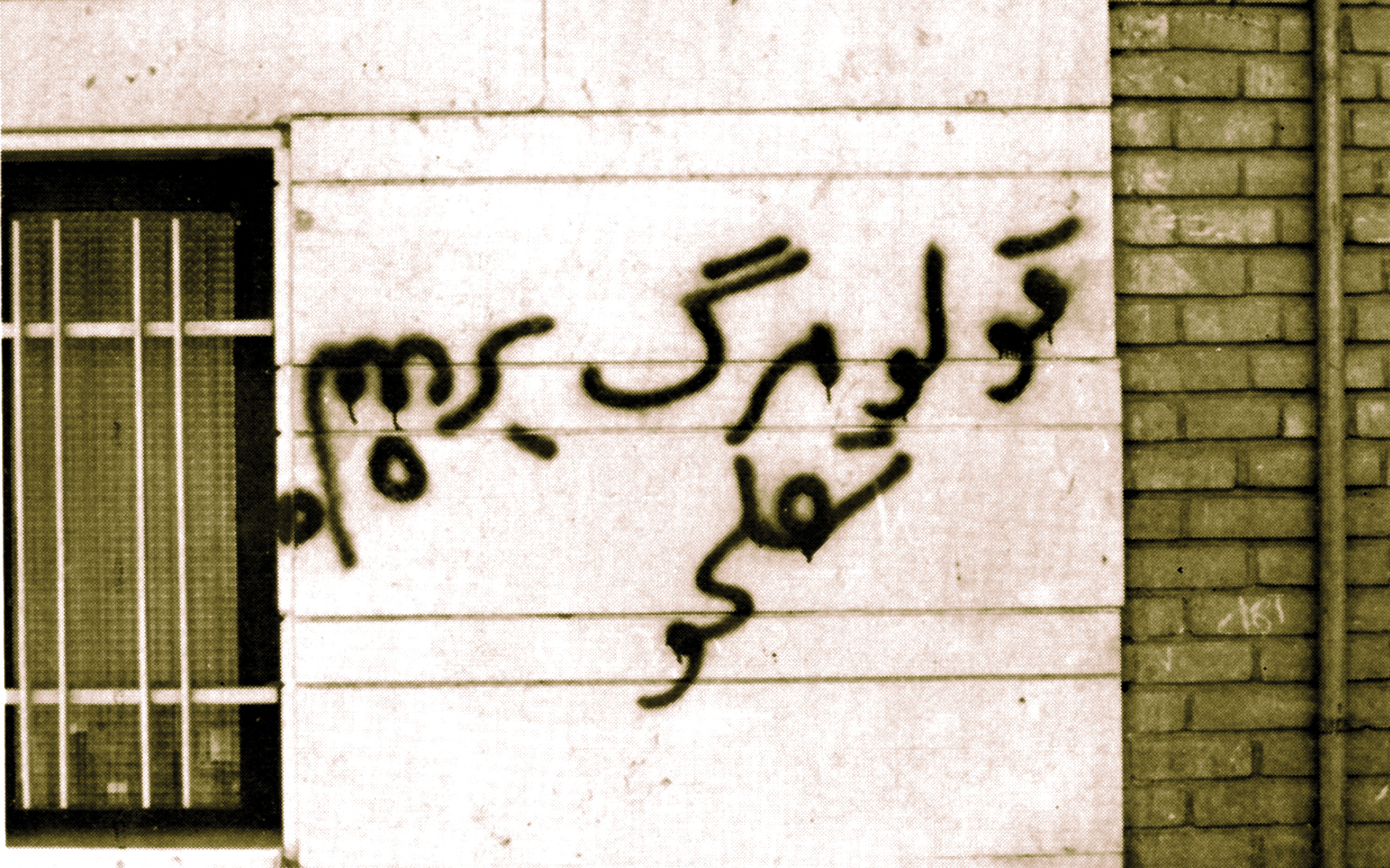 شاید بتوان گفت اولین زمزمههای تصویری گرافیک انقلاب از زمانی آغاز شد که شعارهای شفاهی مردم ضمن راهپیماییهای اعتراضآمیز روی دیوارها نوشته شد. در این میان، تجلی اولیه تصویری گرافیک انقلاب از نوشتۀ واژگونه کلمه «شاه» به انگاره سرنگونی وی در یک تمنا، آرزو یا سعی و کوشش به دست میآمد که در واقع ترجمه تصویری بازی با کلمه «شاه» بود. این نوشته واژگون در واقع از نیازی خبر میداد که باری تثبیت تصویری یک شعار یا ترجمه تصویری آن به کار میرفت. کلمه «شاه» در حالت عادی به خودِ او اطلاق میشد ولی به محض اینکه این کلمه، صرف نظر از شیوه اجرای آن که معمولا با رنگهای اسپری بر دیوارها نوشته میشد، به صورت واژگون بر سطحی نقش میبست. وارد حوزه تصویری شده و دارای مفاهیمی فراتر از آن میشد که فقط مبیّن کلمه عادی «شاه» بود.