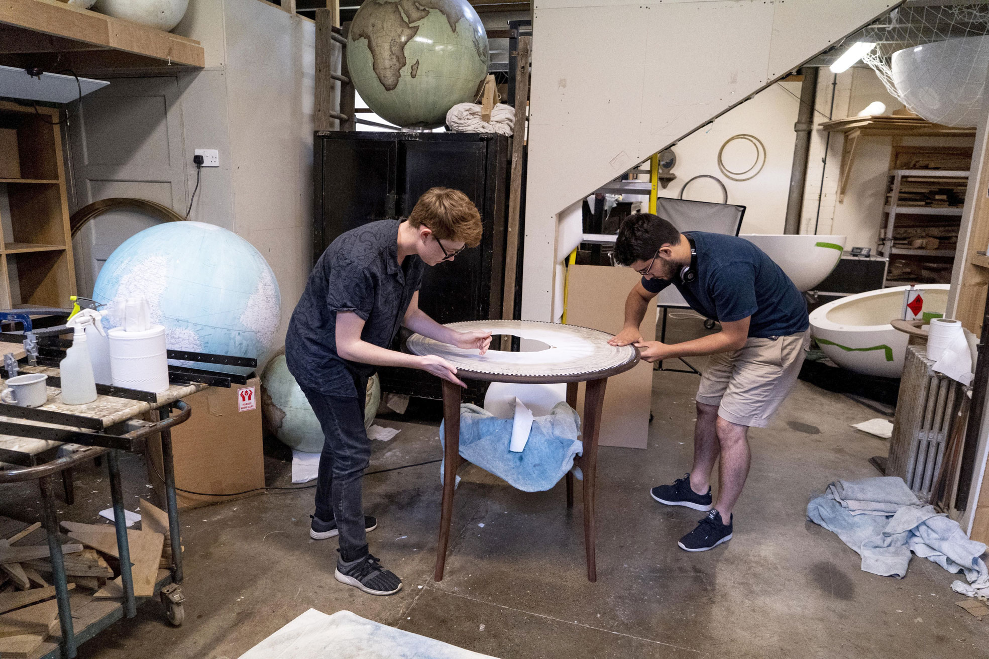 به گزارش روابط عمومی مرکز تجسمی حوزه هنری به نقل از ایرنا، ایده ساخت این گوی در سال ۲۰۰۸ زمانی که «پیتر بلربی» (Peter Bellerby) صنعتگر انگلیسی قصد داشت به مناسبت تولد هشتاد سالگی پدرش یک کره جغرافیایی دستساز با کیفیت عالی بخرد، رقم خورد؛ اما از آنجا که وی موفق نشد چنین گویی را پیدا کند، تصمیم گرفت خود آن را بسازد.