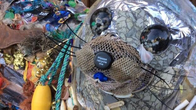 تمام بخش‌های این مجسمه با استفاده از زباله‌هایی که توسط حامیان محیط زیست محلی جمع‌آوری شده، ‌خلق شده است.