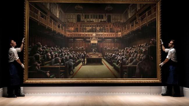 یک نقاشی از بنکسی که نشان دهنده شامپانزهها در مجلس عوام انگلیس است در ساتبیز به قیمت 9.8 میلیون پوند به فروش رفت.