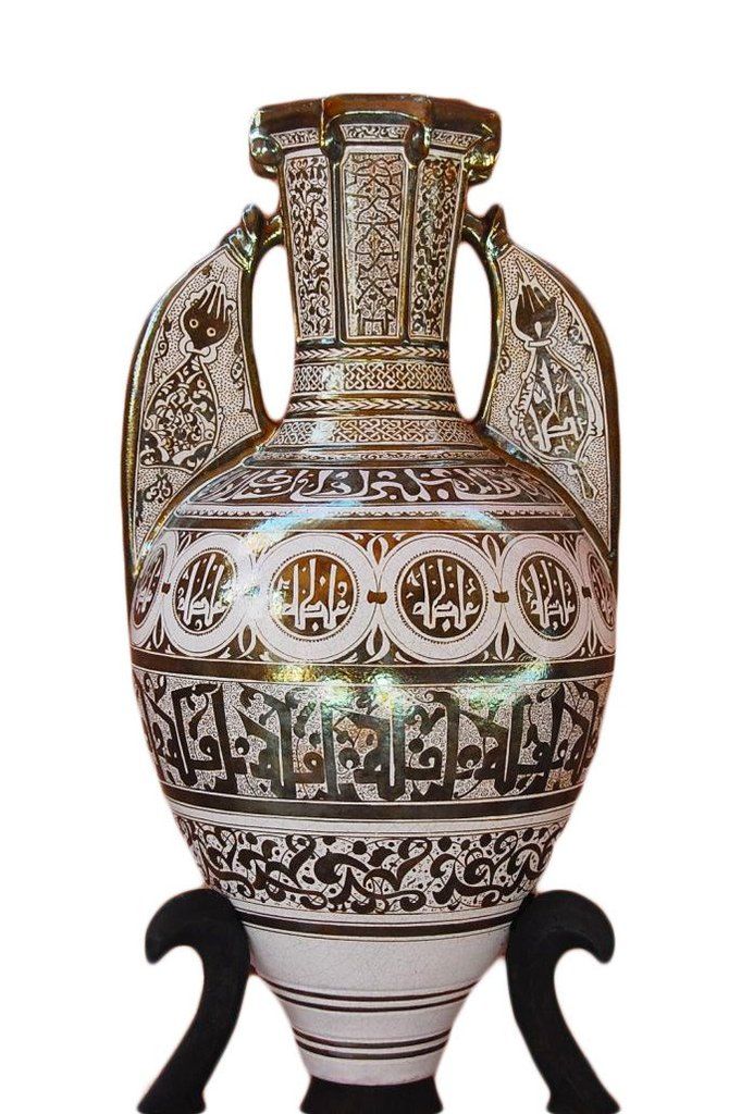 از جمله ممتازترین نمونه های هنر اسلامی اسپانیا (اندلس) گلدان های الحمراء است، ظروف ذخیره سازی بسیار بزرگ با دستگیره های بال مانند بزرگ که شکل سبوهای دو دسته یونانی را به خاطر می آورد. حکایت سه تا از یازده گلدان باقی مانده الحمراء ارتباط نزدیکی با "ماریانو فورتونی"، نقاش و مجموعه دار مشهور اسپانیایی سده 19 میلادی دارد. گلدانی که در اینجا ملاحظه می شود نیز در تملک او بود. "فورتونی" این ظرف را در کلیسایی محلی در سلار (salar)،نزدیک گرانادا کشف کرد که از آن در زیر یک آبدان مقدس (ظرف یا سنگاب مقدس در ورودیه کلیسا) استفاده می کردند. او در کارگاه خود گلدان یاد شده را که موضوع نقاشی ای اثر "ریکاردو مادراسو" در نمایشگاه هنری سال 1874 بود، نگهداری کرد. پس از مرگ "فورتونی" این گلدان را شاهزاده "باسیلفسکی" به مبلغ سی هزار فرانک خریداری کرد. ده سال بعد مجموعه هنری او را دولت روسیه خرید و این ظرف از موزه هرمیتاژ سن پترزبورگ سر در آورد.